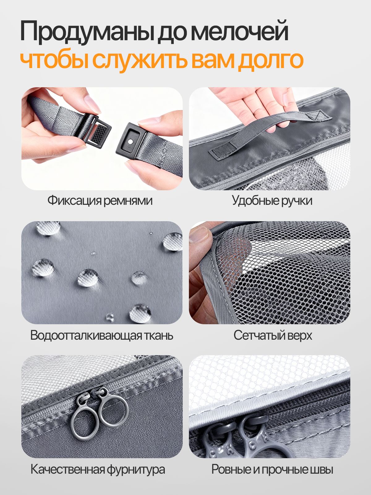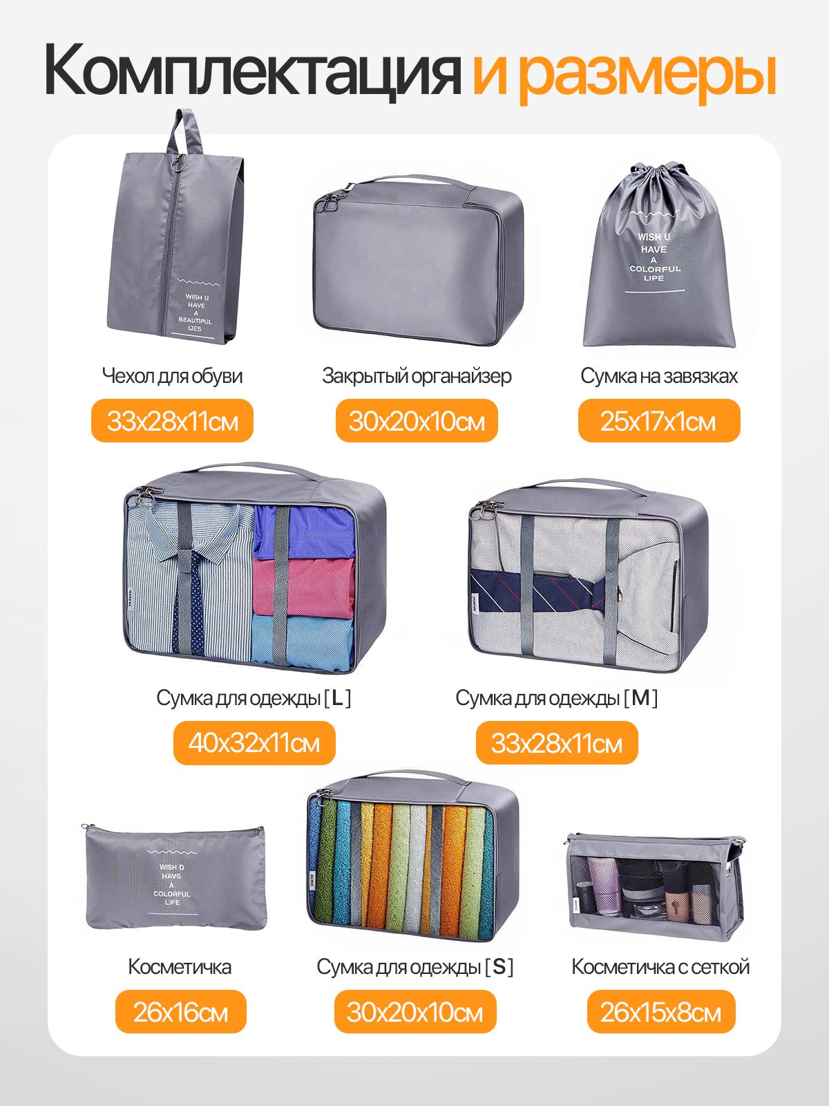 Преимущества серого дорожного набора органайзеров 8 в 1: