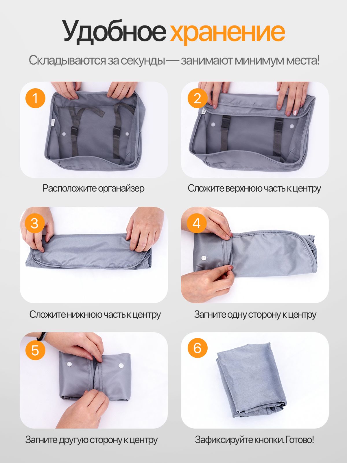 - Компактное хранение, идеальный порядок и удобство транспортировки;