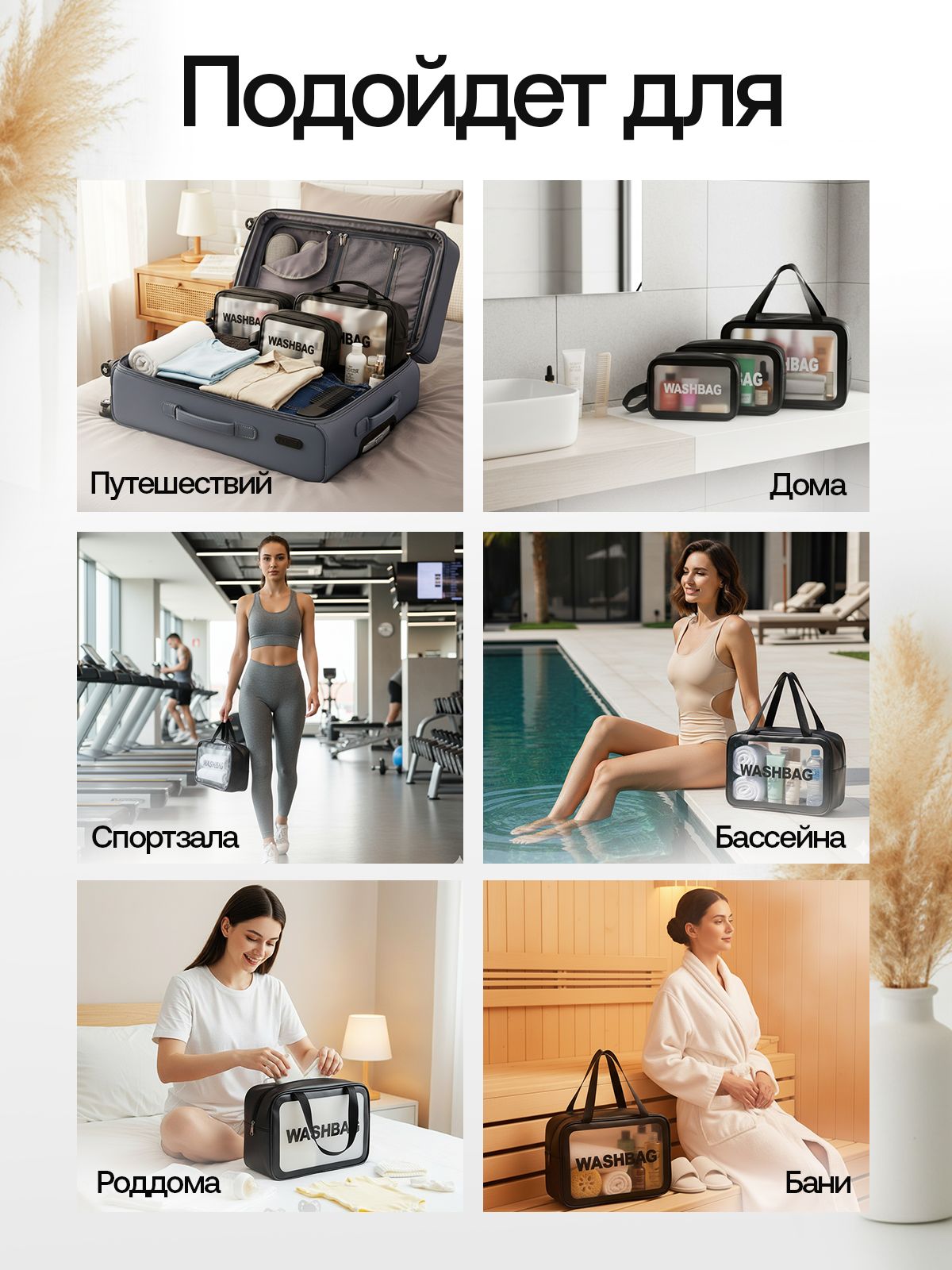 Набор косметичек WASHBAG 3 шт — ваш идеальный помощник в путешествиях, спорте и повседневной жизни.